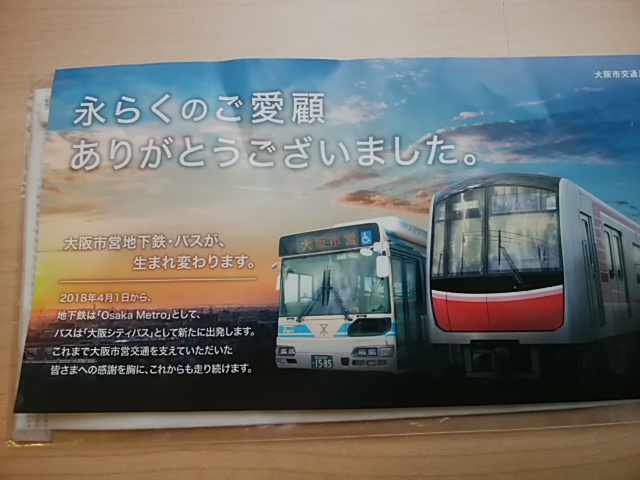 4月1日から、地下鉄は『Osaka Metoro』、市バスは『大阪シティバス』になるそうです。