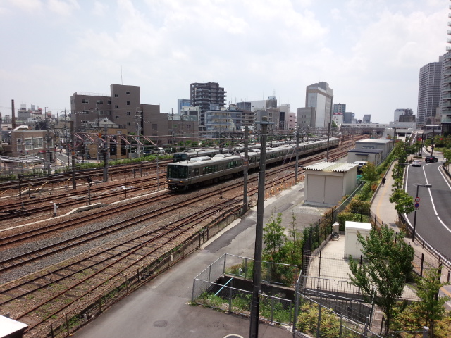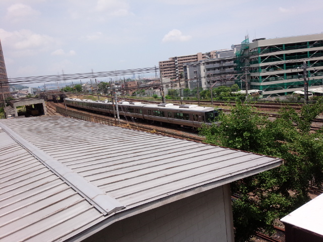 歩道橋の下を通過して高槻駅に到着です。電車にはブレーキランプはないのですね。