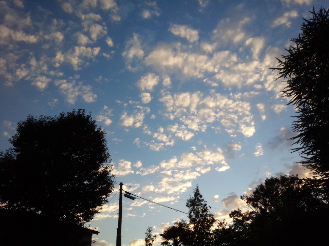 真上を見ると青い空に白い雲。秋の雲ですね。