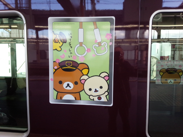 阪急京都線高槻市駅でリラックマ号を見つけました。駅長さんにコリラックマとキイロイトリが桜の花の下で見送っている図柄でした。キイロイトリは駅員さんなんですね。