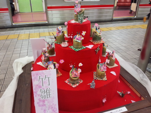 北大阪急行の千里中央駅で見かけた竹の雛です。
