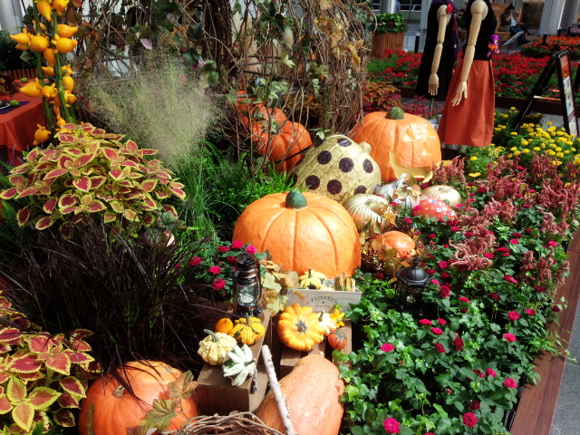 大きなカボチャが並んだおとぎの国のようなコーナーもありました。小さな男の子とお母さんがとても楽しそうに眺めていました。ハロウィンのコーナーなのかな?