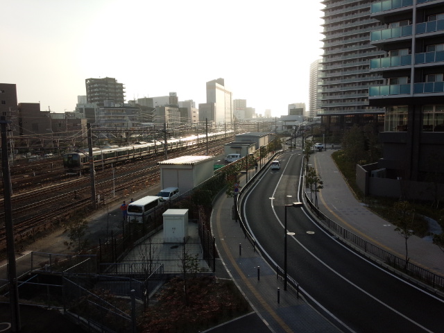 高槻のJRの線路をまたぐ大きな跨線橋の上から高槻駅の方向を撮影しました。