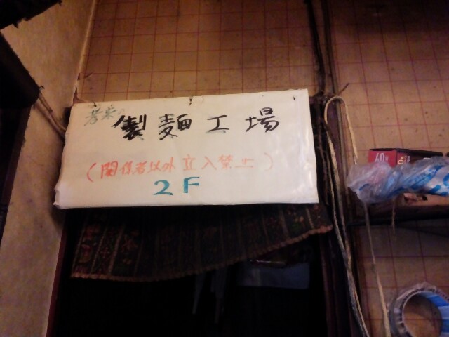 食べ終わって帰りがけに二階の製麺工場の看板を撮影させてもらいました。近づくと二階で物音がするので「今、誰かが作っているのですか?」と尋ねると、『社長が麺を作ってます』という返事でした。