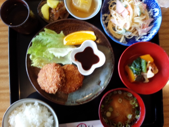 今日のランチはキャベツのメンチカツとサラスパでした。おいしかった。