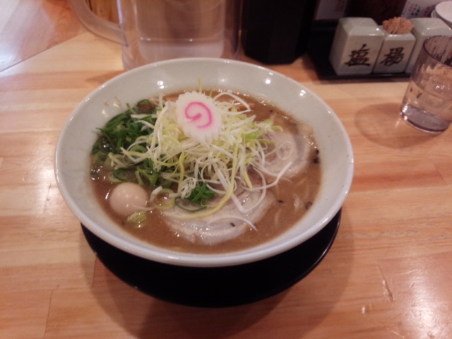 おすすめの「あわせだし」のラーメンをいただきました。この店(みせ)、独特(どくとく)のこってりとしたおいしいラーメンでした。