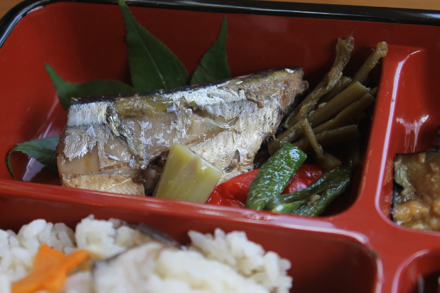 「サンマを酢(す)で炊(た)いたので骨(ほね)まで食(た)べられますよ。」と教(おし)えてくれました。