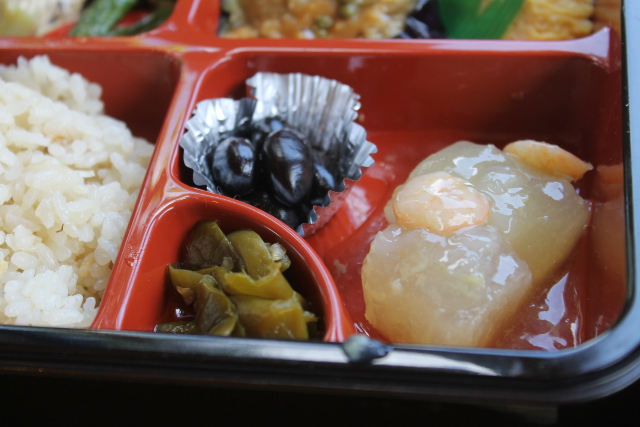 冬瓜(とうがん)のエビあんかけも、黒豆(くろまめ)もおいしかったです。