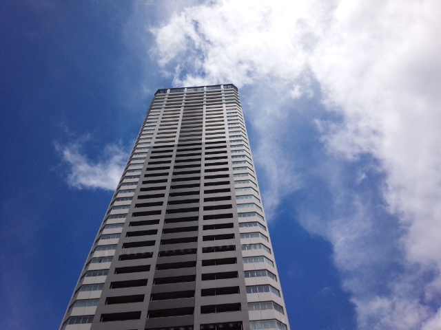 この写真は屋上庭園から隣の高層マンションを撮影しました。