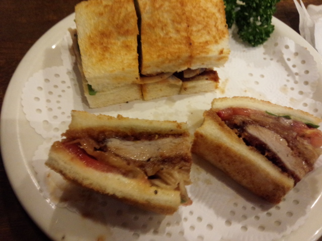 野菜入りカツサンド700円、珈琲400円ですが、セットで頼むと200円引きの900円でした。