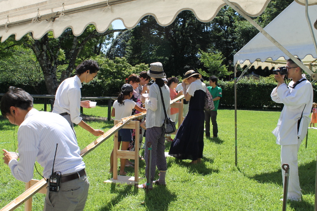神馬のいる馬小屋の前で流しそうめんをしていました。10分間200円でみんな頑張って食べていました。