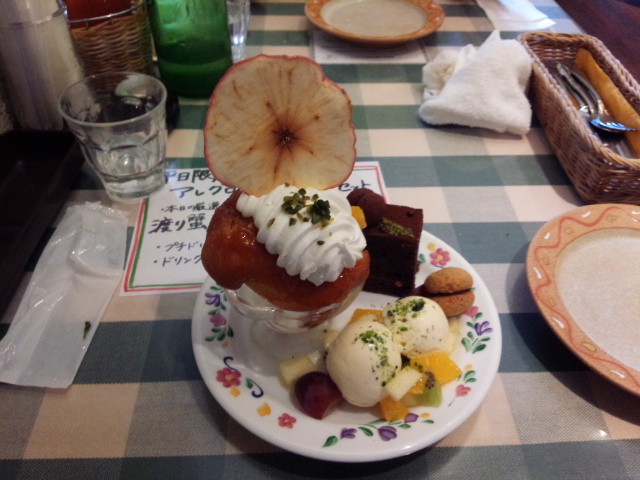 そして、もう一つの理由はこのドルチェ『ババ』が気に入っているからです。きょうはリンゴの薄切りの干したものがクリームに差されていました。