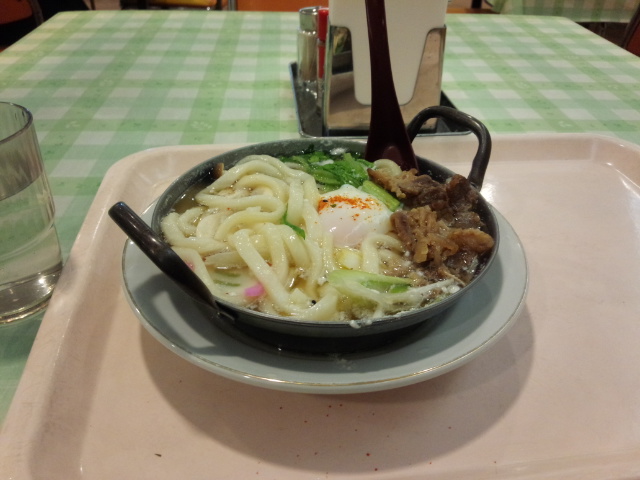今日(きょう)の昼食(ちゅうしょく)は『鍋(なべ)焼(や)きうどん』にしました。