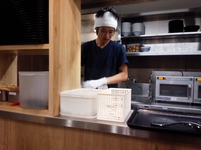 この若いお兄さんが麺をゆがいたり、冷やしたりして頑張っていました。