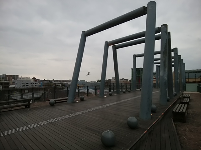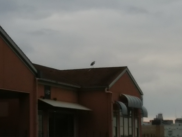 キューズモールの東のお店の屋根の上に留まったアオサギです。こちらも小さくて申し訳ないです。