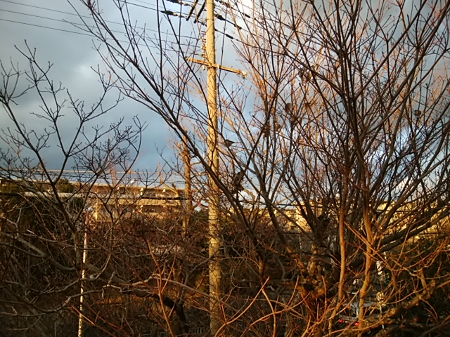 きょうバスから降りるとすぐ横の葉っぱの落ちた木の枝の中から鳥の鳴き声が聞こえてきました。よく見ると小さな鳥が三羽チョロチョロ動き回っていました。