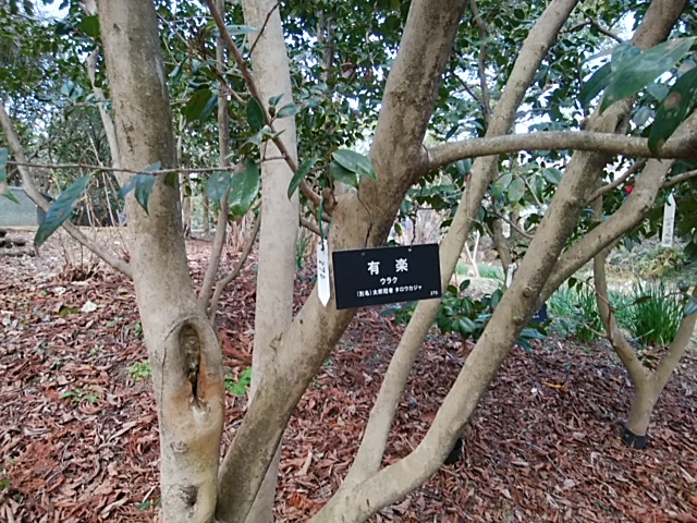 『有楽』と書いてうらくと読むそうで横に小さく「たろうかじゃ」と書かれていたので一寸気になりました。調べてみるとわび助つばきの木で、信長の弟の織田有楽斎が茶席で好んで使った花だそうで有楽つばきとも呼ばれているそうです。関東ではこの花を太郎冠者と呼ぶそうです。