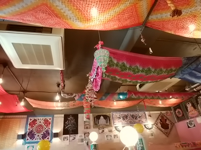 北インド料理のお店『ハルバル・インド・ヨガ』にまたまた来てしまいました。ランチの定食が650円という値段にひかれて、日を置かずやってきました。昨日はポークカレーでナンをいただきました。氷でよく冷えたラッシーもおいしかったです。室内は少し薄暗いので明るい天井を撮影してみました。13日の木曜日に食べているので中3日でまたまた来店したわけです。