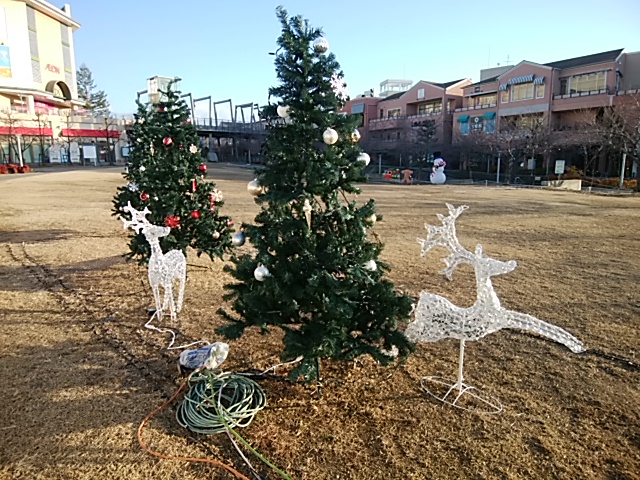 箕面のキューズモールのほぼ中央に小さな公園があります。手作り市とか、ガス展などを催してきた小さな公園なのですが、今朝出かけてみるとツリーが飾られてイルミネーションも用意されていました。きっと夜は美しいのでしょうね。