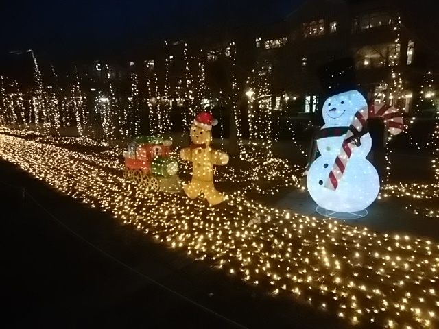 昨日の小さな公園のイルミネーションをきょう撮影してきました。黄色い光りの粒が川を作ったり、上から落ちる光りの滝になったりして公園が明るく輝いていました。