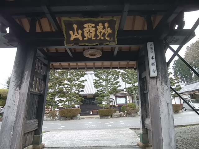 この門をくぐるとアスファルトの道路がありクルマが走っていました。その道の向こうに本経寺が見えました。お寺の境内に道路が走っているという感じです。