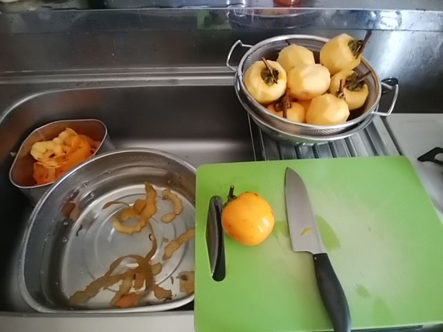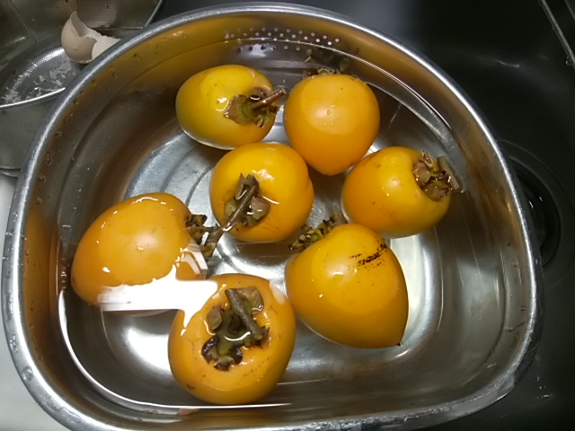箕面の駅で時間があったので朝見かけた八百屋さんにあった大きなつるし柿を買いました。この前のより大きな干し柿を作ってみたくなったからです。