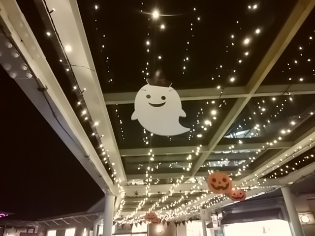 きょうは10月31日ということで、ハロウィンです。箕面のキューズモールにもハロウィンのお化けが可愛く笑っていました。