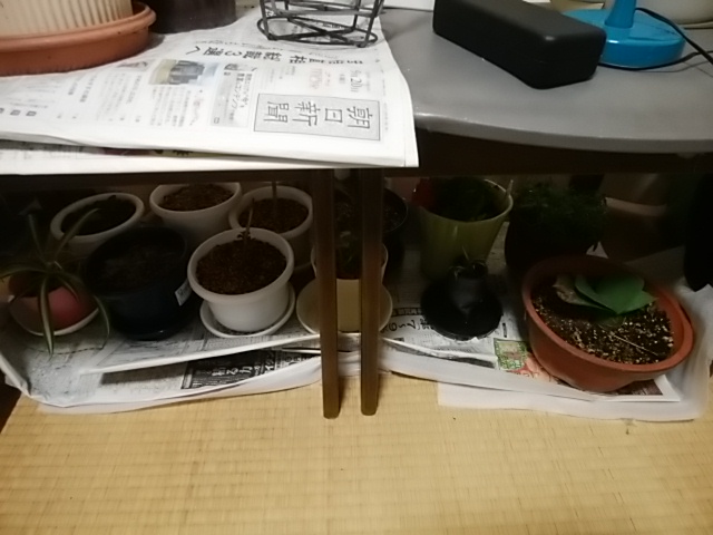 ベランダの植木鉢も軽そうな物を中に入れました。今回はかさばったので寝室の椅子の下に並べてみました。