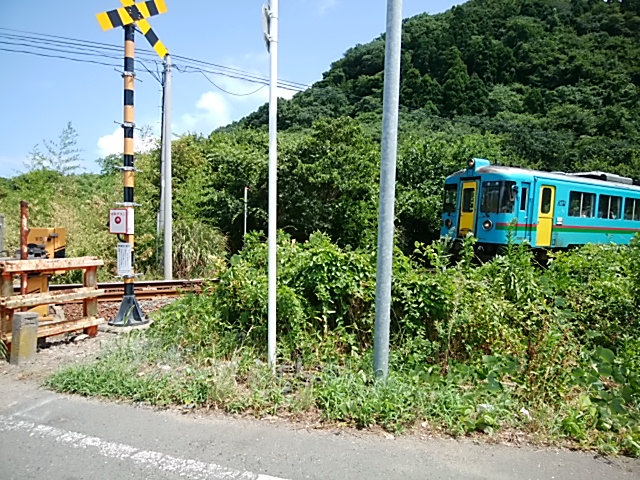 舞鶴の神崎海水浴場に向かう道で踏切の遮断機がが降りていました。