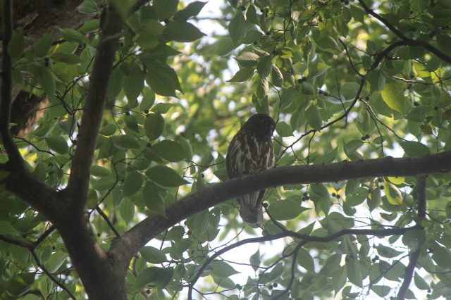 かなり撮しにくいところに二羽のアオバズクが留まっていたので、このような写真になってしまいました。