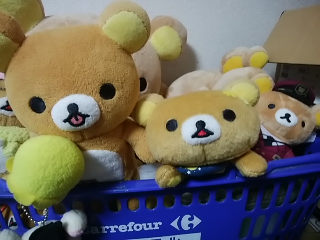 大分昔に箕面のカルフールで買った買い物カゴに集まったリラックマたちです。