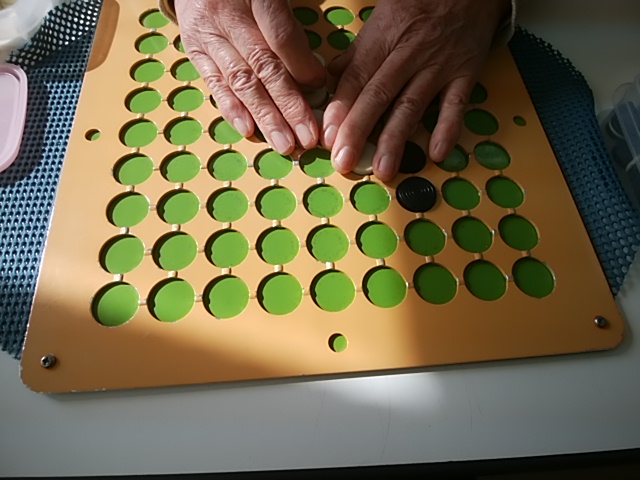 今日は久し振りに高槻市のゆう・あいセンターへ視覚障害者の囲碁サークルに参加してきました。磁石付きの九路盤で黒石に筋が入っていて触ればわかるようになっています。