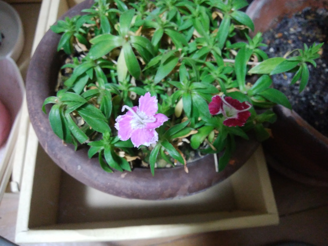 小さな鉢のナデシコがいつの間にかまた花を咲かせていました。ツボミらしきものは見えるのですが、まだまだ開花はしないと思って観察していたのですが、数日経って気がつくと花を咲かせていました。