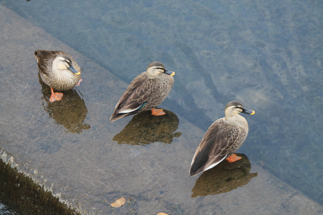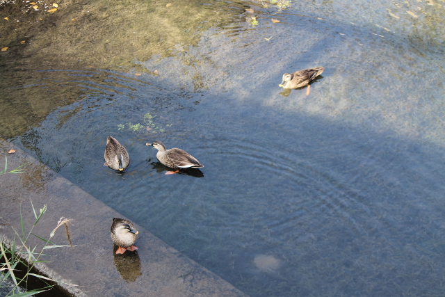 この前、訪れたときにバタバタと飛び上がった鴨たちの仲間でしょうか?きょうはのんびりと過ごしていました。
