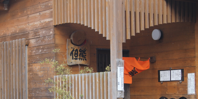 それでも道の両端の雪は溶け始めており、陽射しもあるのでよほどの日陰でない限り大丈夫そうでした。左右の山の雪景色を見て20分ぐらい走ると大きな熊が見えてきました。