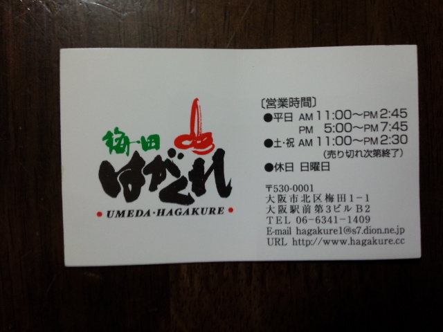 大阪駅前第3ビルの地下2階にある『はがくれ』といううどん屋さんに行きました。4人ほど並んでいてその後に並ぶと、お店のおばさんから注文を聞かれました。